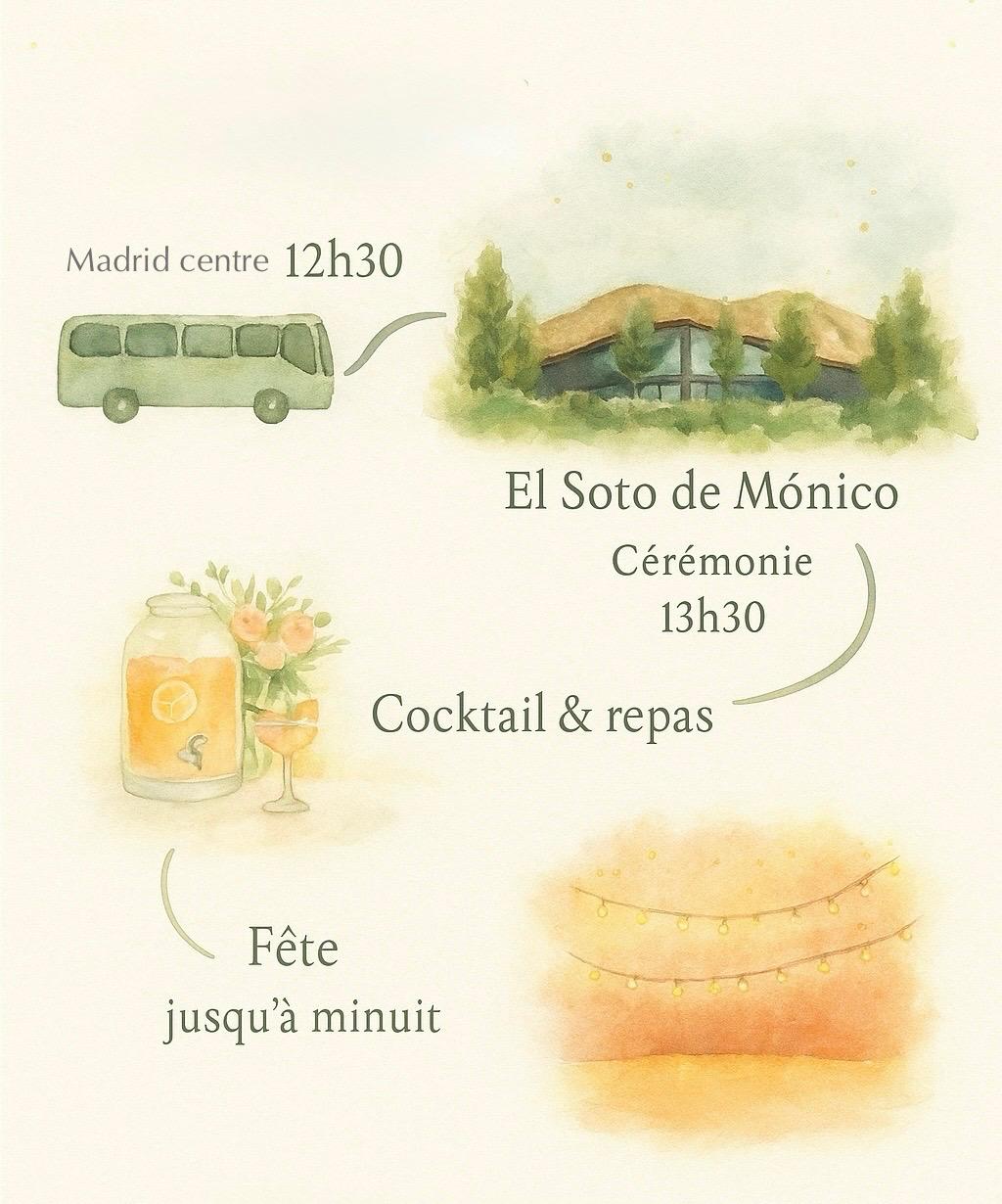 Ce sera l’instant de dire oui entourés de ceux qu’on aime, sous le soleil de Madrid et les sourires de nos proches.  ❤️